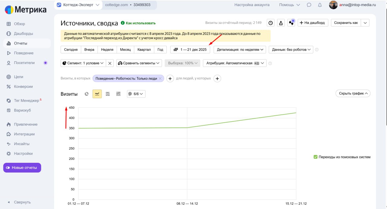 Выделен рост посещаемости в самый не сезонный месяц (декабрь) — несмотря на сезонность, в самый не сезонный месяц были достигнуты рекордные показатели.